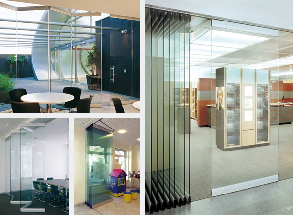 Glass systems offer the clearest possible unbroken vision in a sliding partition, ideal for situations where space needs to be divided into inviting, viewable rooms, such as shop fronts, showrooms, waiting areas, church halls and other areas that do not necessarily require sound reduction properties.